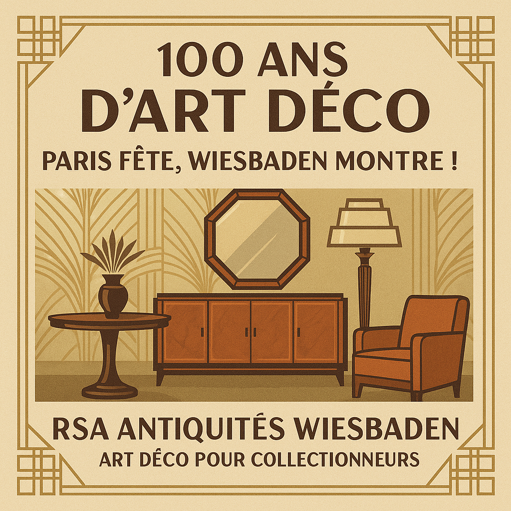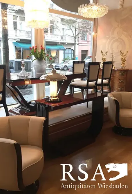 Wenn Sie also zum 100-jährigen Jubiläum nicht nur darüber lesen, sondern Art Déco berühren, stellen und besitzen möchten, besuchen Sie unsere Art-Déco-Auswahl in Wiesbaden – wir beraten Sie gern zu Originalen und stiltreuen Neuanfertigungen.
